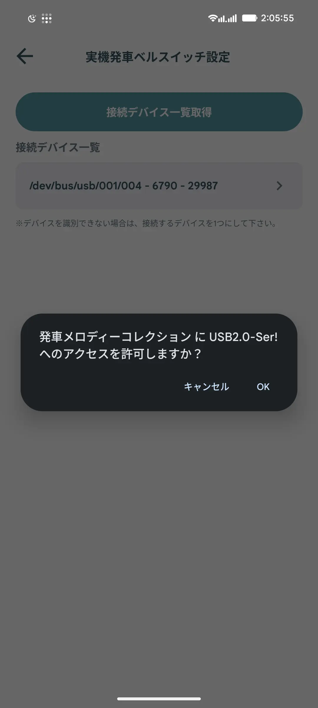 発車メロディーコレクションAndroid版での実機発車ベルスイッチ接続方法